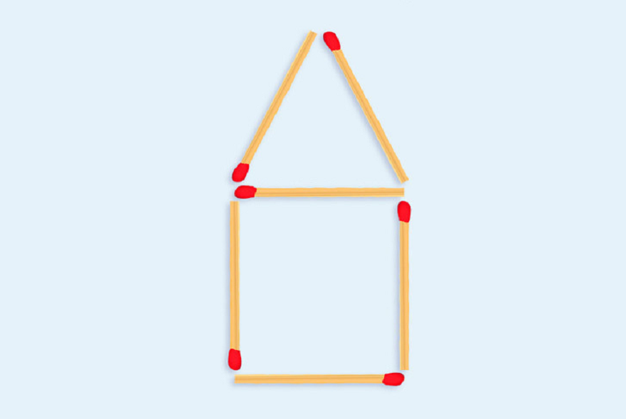 Di chuyển hai que diêm nào để có bảy hình tam giác?