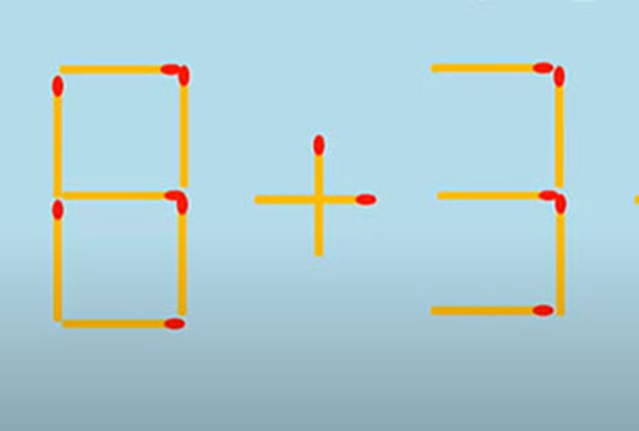 Câu đố được một tài khoản Facebook chia sẻ trên mạng thu hút sự quan tâm của nhiều người. Đề bài yêu di chuyển 1 que diêm để được phép tính đúng. Các que diêm được sắp xếp thành phép tính 8 + 3 - 4 = 0.