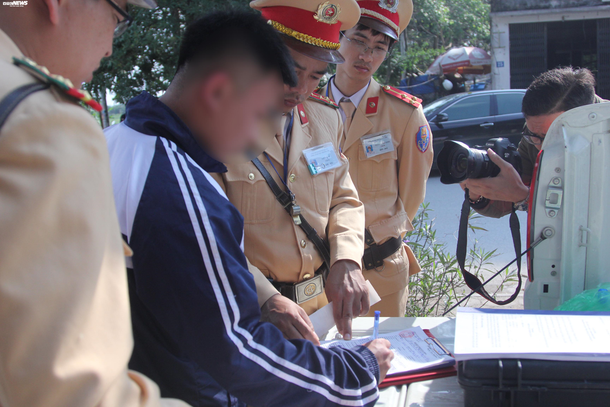 Khi xuống xe, nam thanh niên mặt đỏ tía tai, lo lắng. Kết quả cho thấy mức nồng độ cồn ở nam sinh này là 0,117 miligam/lít khí thở. Thanh niên này còn không có giấy tờ lái xe.