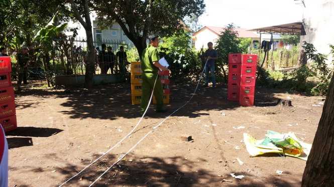 | Lực lượng chức năng đang phong tỏa, khám nghiệm hiện trường |