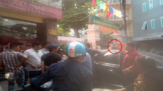 Bà Nguyễn Thị Hường – một công nhân chứng kiến sự việc – cho biết khẩu súng ông Hùng cầm súng ngắn. Khi thấy ông Hùng cầm cổ ông Bình kéo vào nhà 189B Cống Quỳnh, mọi người kêu to “có súng, có súng” đồng thời tính xông vào giải cứu ông Bình. Khi thấy đông công nhân sáp lại trước cửa, ông Hùng với thả ông Bình ra. Thấy tập trung đông người, kẹt xe nên một lát sau công an đến giải tán đám đông.