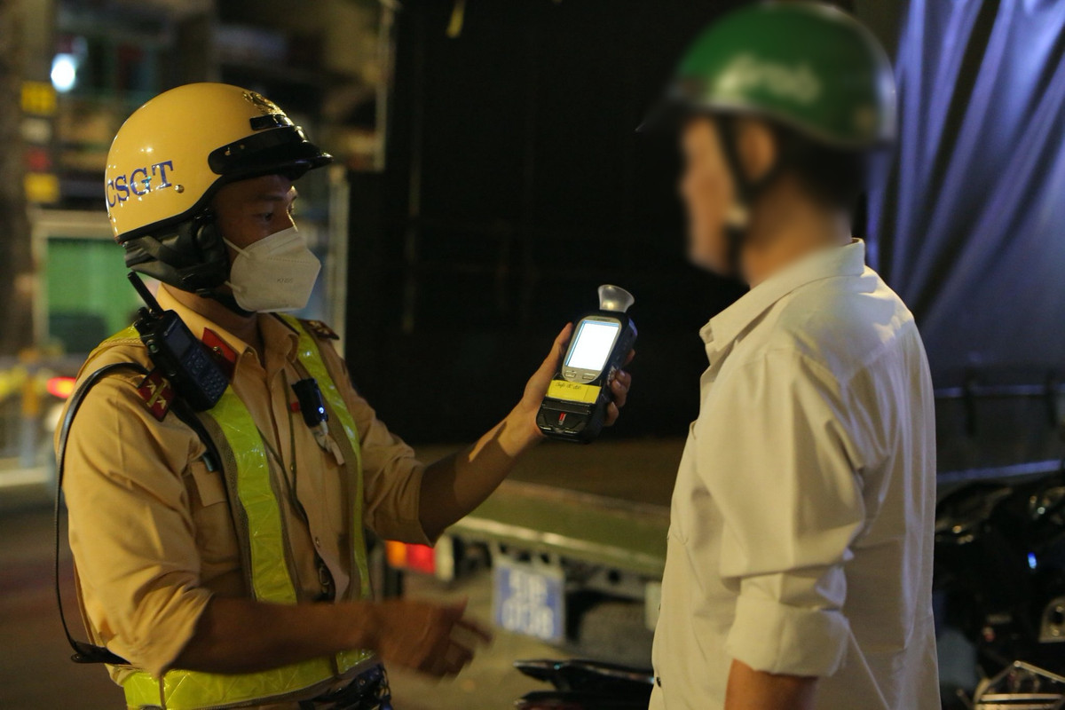 Khoảng 22h, đội kiểm tra nồng độ cồn của một tài xế xe ôm công nghệ đang chạy xe trên đường, phát hiện nồng độ cồn 1,077mg/lít khí thở (gần gấp 3 lần mức kịch khung). Đó là anh T.M.T. (sinh năm 1984, ngụ Quận 8. Anh bị CSGT lập biên bản xử phạt 7 triệu đồng, tước bằng lái 23 tháng, tạm giữ xe 7 ngày.