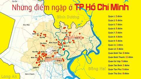 | Bản đồ 66 điểm ngập ngoài đường phố ở TP.HCM - Đồ họa: Việt Anh |