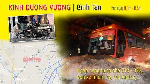 2 tuyến đường có độ ngập sâu nửa mét: đường Quốc Hương (quận 2) và đường Kinh Dương Vương (quận Bình Tân).