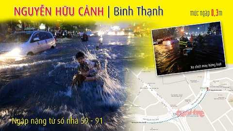 11 điểm ngập tại quận Bình Thạnh - là quận có nhiều điểm ngập nước nhất tại TP.HCM.