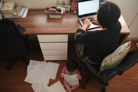 "Hiện tại chồng mình đã đi làm trở lại, chỉ còn mình ở nhà vừa làm việc online, vừa trông 2 con. Sắp tới công ty mình thông báo đi làm trở lại, không biết tính đường nào cho hai đứa nhỏ", chị lo lắng.