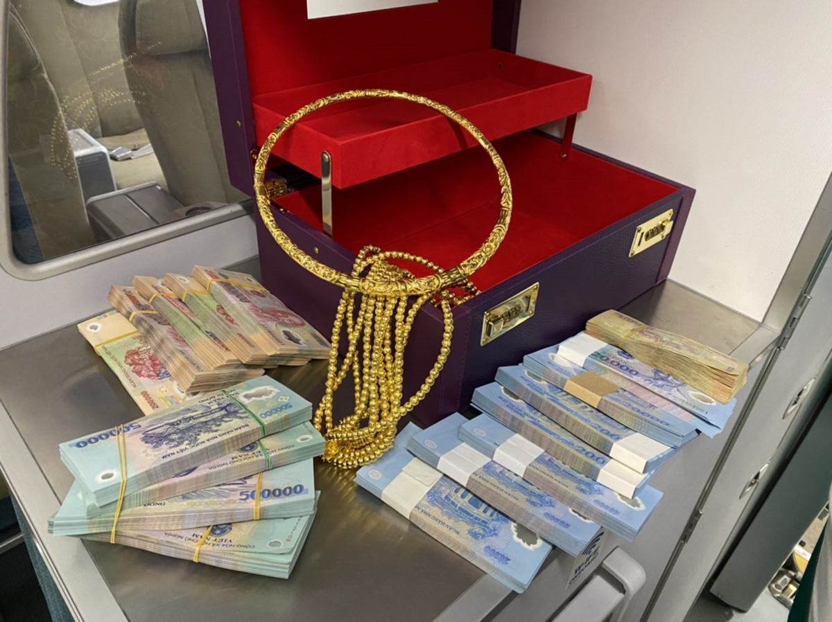 Thông tin từ Vietnam Airlines cho biết, sau khi chuyến bay VN1262 từ TP.HCM hạ cánh tại Vinh vào sáng nay 16/3, hai tiếp viên của Vietnam Airlines phát hiện một chiếc hộp da màu tím bị để quên trên ngăn đựng hành lý. Bên trong chiếc hộp có 315 triệu đồng tiền mặt cùng nhiều trang sức bằng vàng.