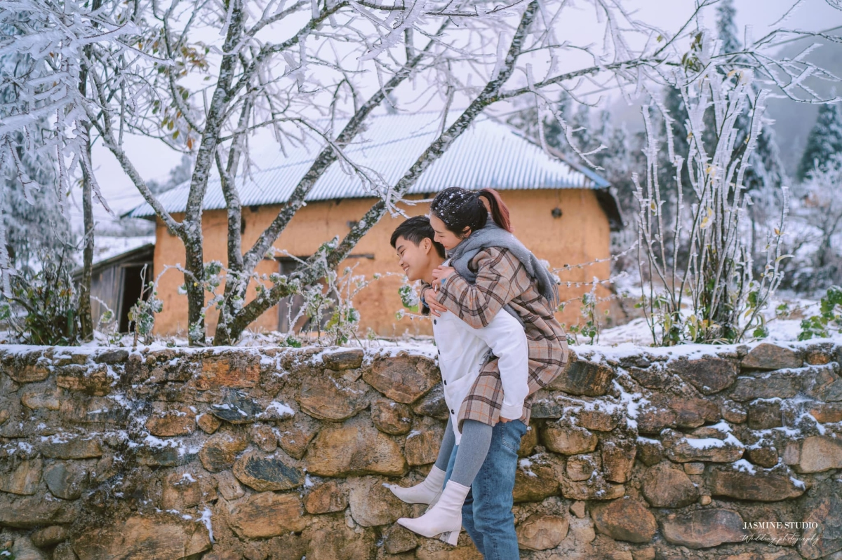 - Chụp ảnh đôi tạo cảm giác ấm áp: Những bức ảnh đôi dưới trời băng tuyết trắng xoá sẽ rất ấn tượng, tạo sự tương phản giữa thiên nhiên giá lạnh và sự ấm áp của tình yêu, nhất là khi hai bạn mặc đồ sặc sỡ và cùng nở nụ cười hạnh phúc. Những cái ôm, một chiếc áo khoác chung hay cái nắm tay trong chiếc găng tay ấm áp đều trông rất đẹp trong khung cảnh này.