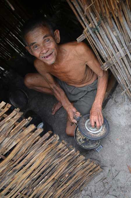 Lão bảo, lão đi làm thuê kiếm tiền để mua thêm mì tôm, muối, mắm cái và mì chính. Hỏi lão có mua thịt cá không? Lão lắc đầu rồi cười bảo: “Thỉnh thoảng có mua. Nhưng mấy thứ đó tui ăn không quen, ăn rau củ cải là chủ yếu…”.