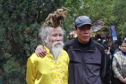 Mái tóc hình con rồng kết hợp với bộ râu quai nón và bạc trắng như cước khiến cho cụ trông như một “ông bụt, ông tiên” nên đã thu hút trí tò mò của hàng ngàn du khách.
