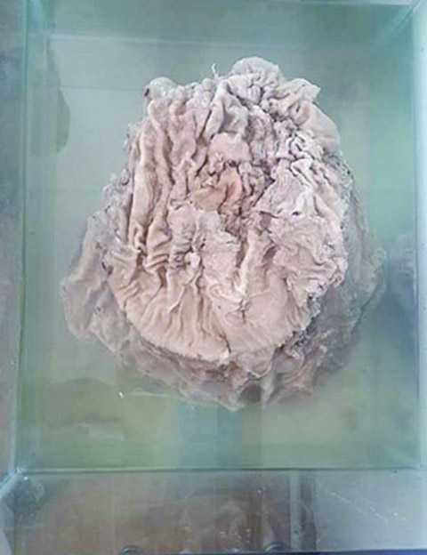 Vật lạ có đường kính khoảng 30 cm, cao 40 cm, nhìn giống một gốc cây già, trên thân có nhiều vân. Thịt cây có tính đàn hồi, cấu trúc giống như sợi nấm. Tuy ngâm trong nước lâu ngày, nhưng cây không bị thối.