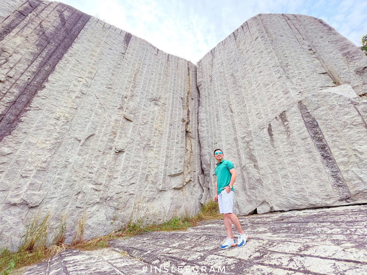 Hình dáng sừng sững độc đáo của vách đá trở thành phông nền sống ảo "xịn sò". (Ảnh: MC Hiếu Hiếu)
