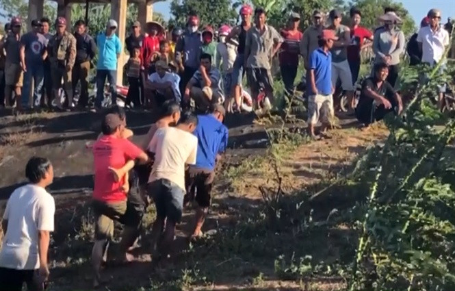 Người dân vớt thi thể nạn nhân để bàn giao cho gia đình lo hậu sự. (Ảnh: CTV)
