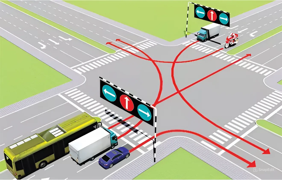 Đi theo hướng mũi tên, xe nào vi phạm giao thông?