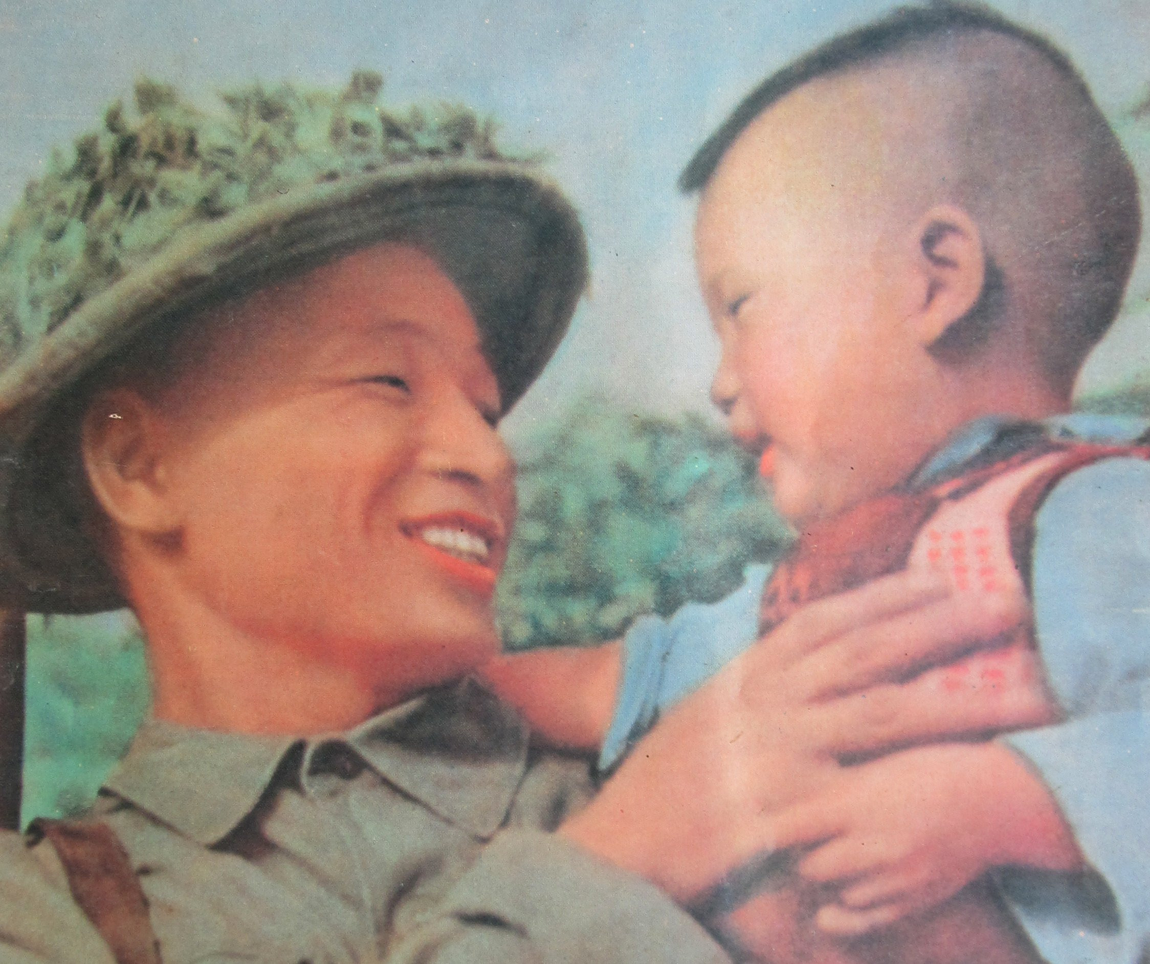 Bức ảnh có tên là “Anh bộ đội bế em bé” này đã được in trên bìa của tờ “Họa báo Việt Nam” cách nay 62 năm (1955 – 2017). Bức ảnh đã gây một ấn tượng mạnh mẽ cho nhiều độc giả khi đó bởi sự gần gũi, giản dị của người lính Cụ Hồ.