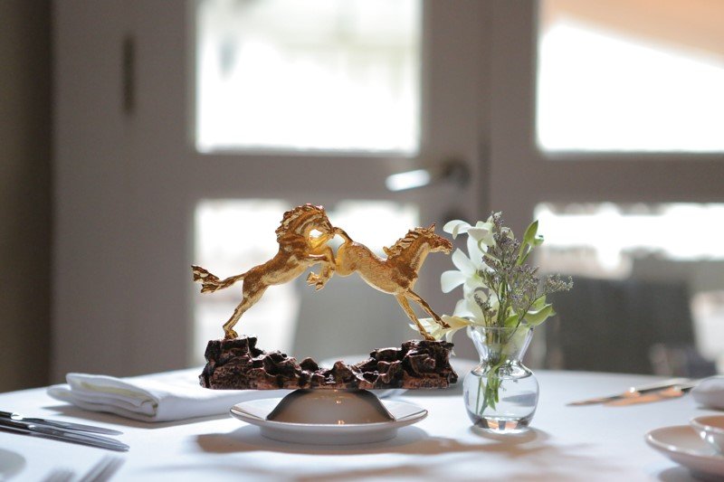 Tượng “Song Mã” được đúc bằng hợp kim thiếc và mạ vàng 24K, tượng trưng cho mối quan hệ gắn bó giữa hai bên đối tác