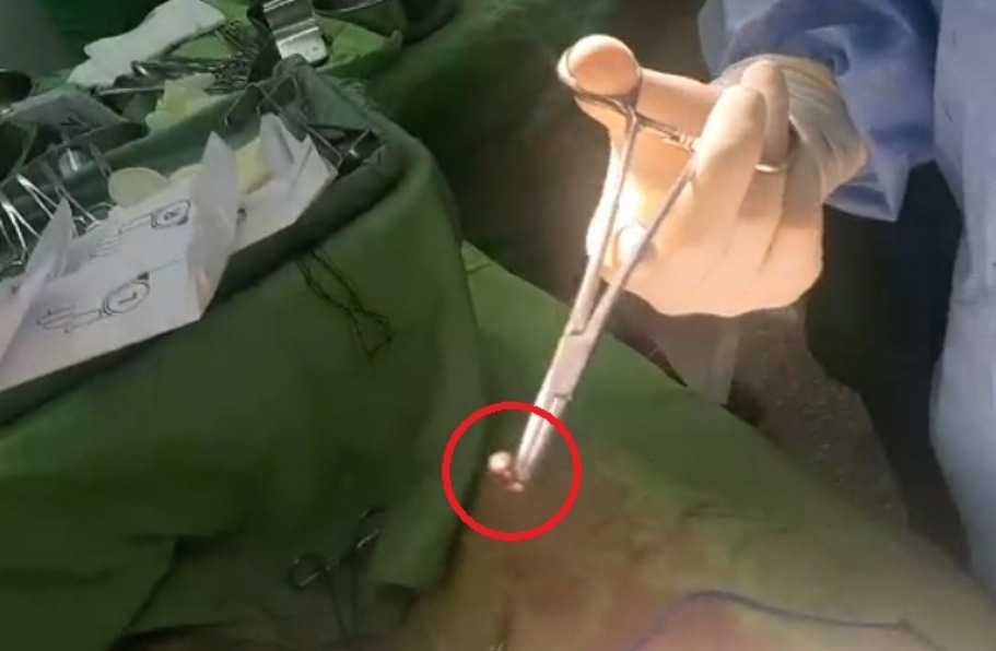 Các bác sĩ phẫu thuật thành công cho K. và lấy ra được viên đạn chì kích thước 2,5x0,8cm.