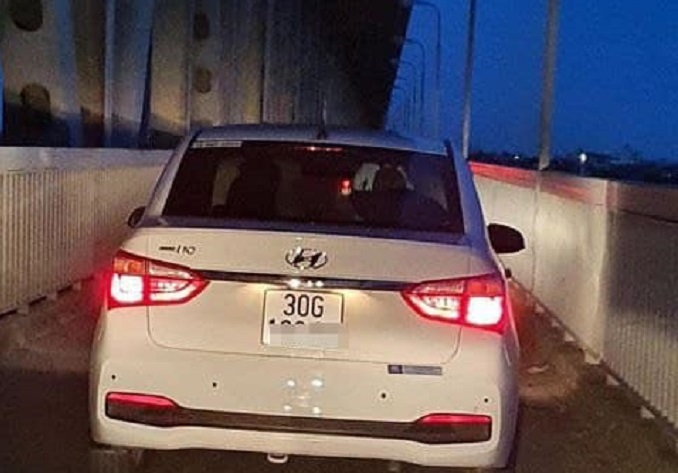 Trước đó, Công an TP Hà Nội nhận được clip phản ánh xe ô tô BKS 30A-160.xx đi làn dưới cầu Thăng Long, làn dành cho xe mô tô và thô sơ, gây nguy hiểm cho người tham gia giao thông.