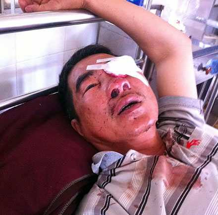 Chiều 26/9, bác sĩ Ngô Văn Hồng, phó khoa mắt Bệnh viện Chợ Rẫy TP.HCM cho biết bệnh nhân bị ném đá vào mắt, đã được BV Đa khoa tỉnh Đắk Lắk chuyển đến BV Chợ Rẫy trong tình trạng bể nhãn cầu trái, phòi tổ chức nội nhãn và gẫy xương chính mũi.