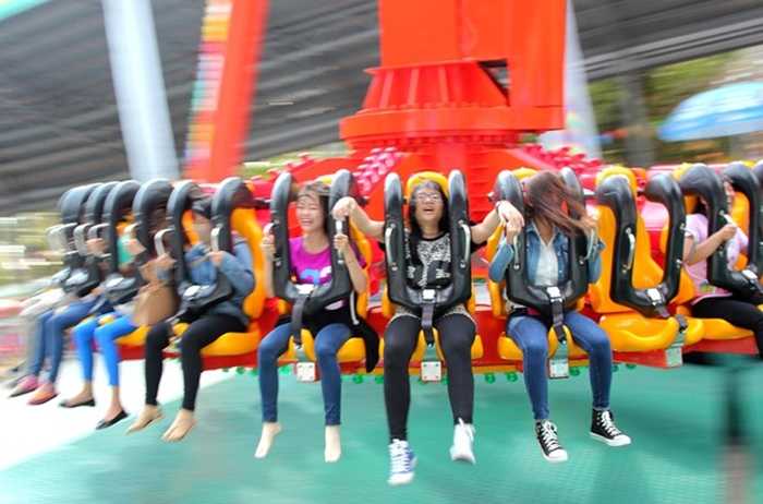 Bạn Hồ Xuân Ánh, ở quận 9, cho biết, đây là lần đầu tiên bạn tham gia trò chơi mạo hiểm như thế này. Do chiếc đĩa vừa xoay vừa đu đưa nên tạo cảm giác khác lạ so với những trò chơi mạo hiểm truyền thống trước đây bạn đã từng tham gia chơi.