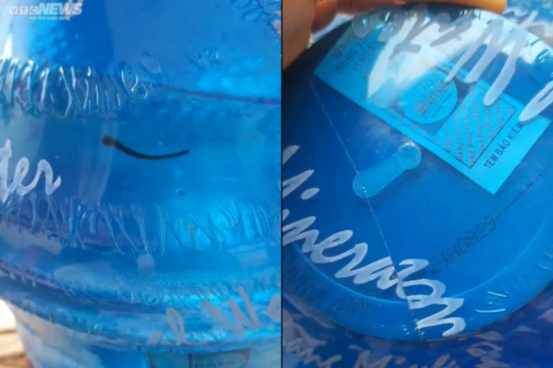 Con đỉa được phát hiện trong bình nước còn nguyên tem. (Ảnh cắt từ clip)