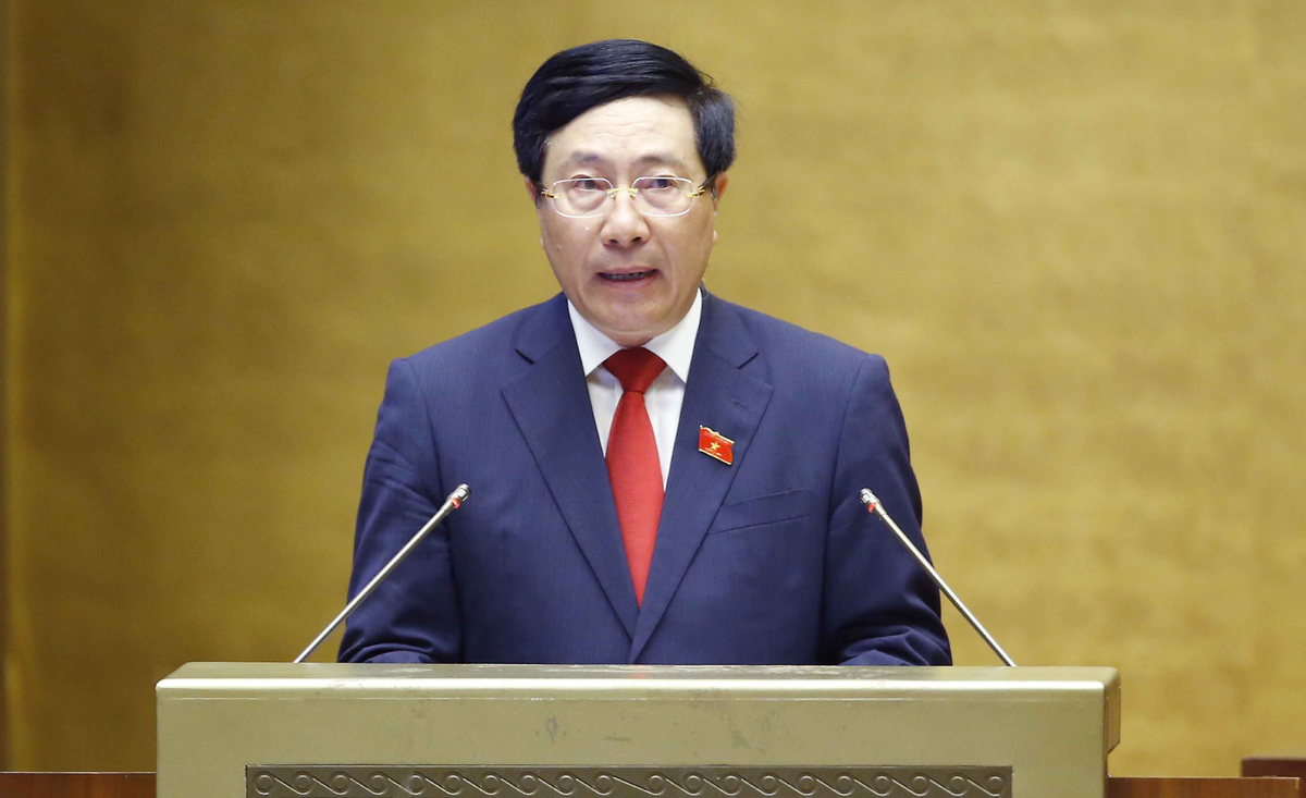 Phó Thủ tướng Phạm Bình Minh báo cáo tại kỳ họp thứ nhất, Quốc hội khóa XV sáng 22/7.