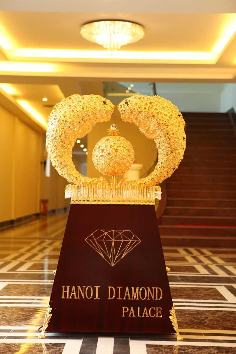 Nội thất của Diamond Palace được thiết kế tinh tế, sang trọng với thảm trải sàn, đèn chùm pha lê và sân khấu được trang bị hệ thống âm thanh, ánh sáng hoành tráng.