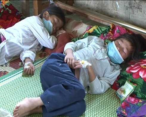 Đây cũng là thời điểm bản Piêng Cọoc xuất hiện nhiều trường hợp trẻ nhỏ có triệu chứng bị sốt, nổi ban, mắt đỏ, viêm đường hô hấp.