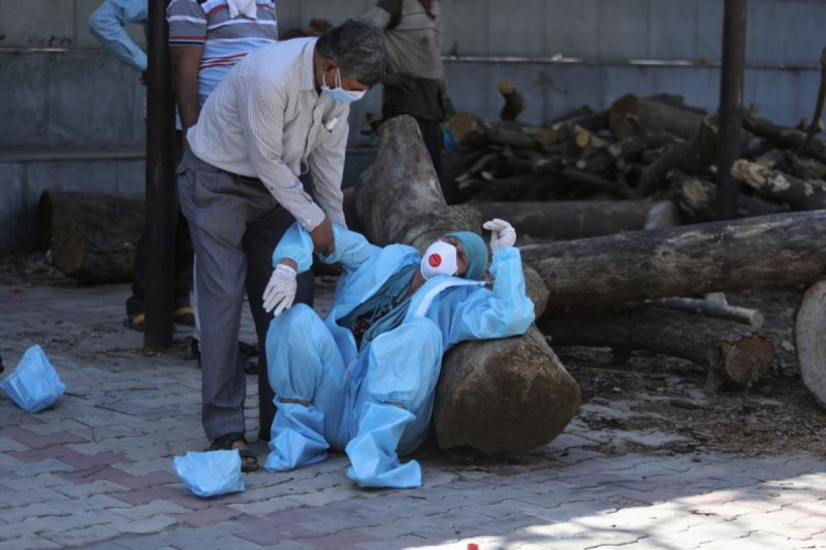 Bên cạnh hình ảnh đau lòng về các bệnh nhân đang kiệt sức trên đường tới bệnh viện vì thiếu oxy là hình ảnh khủng khiếp ở các nghĩa trang, các lò hỏa táng.