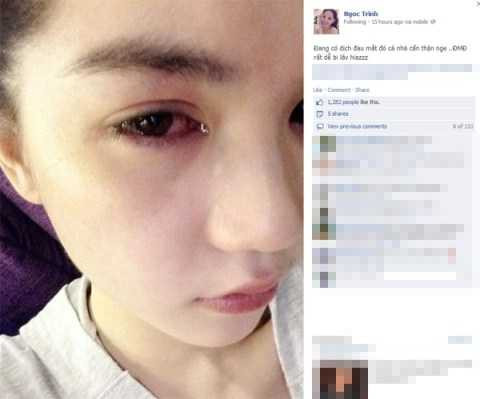 (VTC News) - Tại TPHCM và một số tỉnh lân cận, khoảng 2 tuần trở lại đây, bệnh đau mắt đỏ đang bùng phát nhanh. Nhiều trường hợp đi khám khi đã bị nặng và phải phẫu thuật. Theo chia sẻ trên mạng xã hội, người mẫu Ngọc Trinh cũng bị nhiễm và đang điều trị.