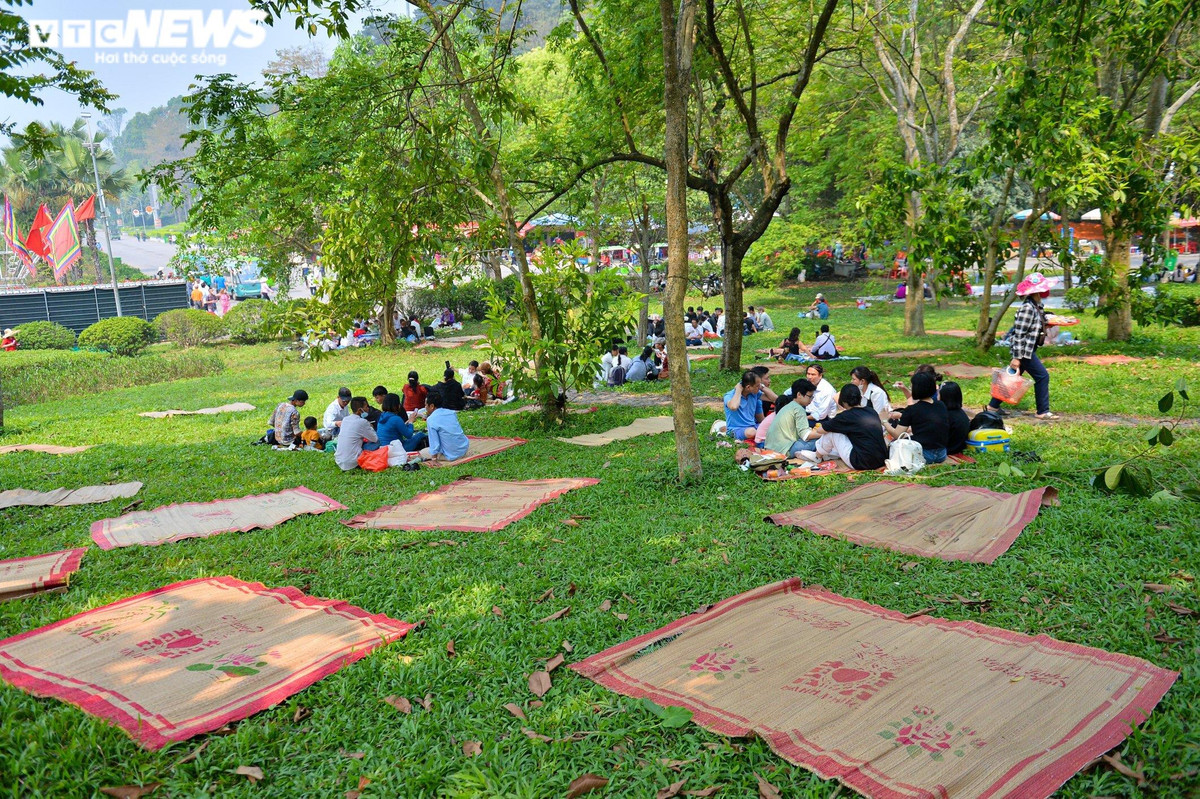 Số lượng khách đổ về đông khiến nhu cầu sử dụng dịch vụ tại khu di tích Đền Hùng tăng cao. Nhiều người dân địa phương đã tranh thủ cho thuê chiếu tại khu vực bãi cỏ dưới chân núi và lối lên Đền Hùng.