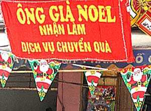 | Mới 8/12 nhưng nhiều nơi đã treo biển dịch vụ ông già Noel chuyển quà. |