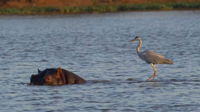 Video: Chim diệc xám cưỡi trên lưng hà mã để săn mồi