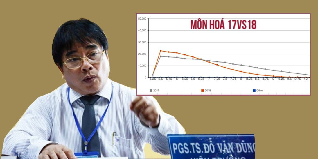 Ông Dũng đưa ra so sánh mức điểm nộp hồ sơ xét tuyển đại học của ba môn thi Toán, Lý, Hóa giữa năm 2017 và 2018 và kết luận: "Số học sinh đạt 7 điểm trở lên các môn này giảm rõ".