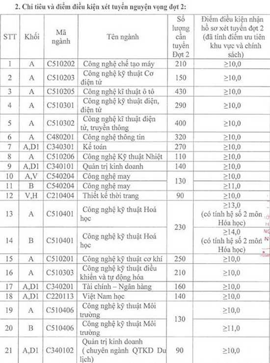 Các ngành cao đẳng điểm chuẩn đều là 10,5 điểm.