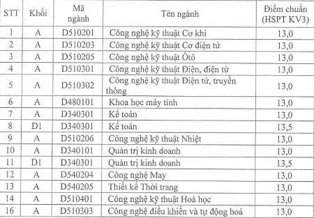 13 | Sư phạm Kỹ thuật Công nghiệp | D140214 | A | 18,0 |