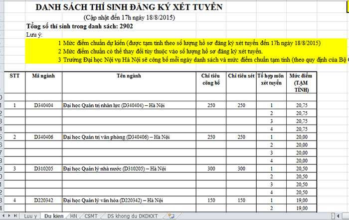 | Điểm chuẩn dự kiến vào các ngành của Đại học Nội vụ Hà Nội tính đến hết ngày 18/8 |
