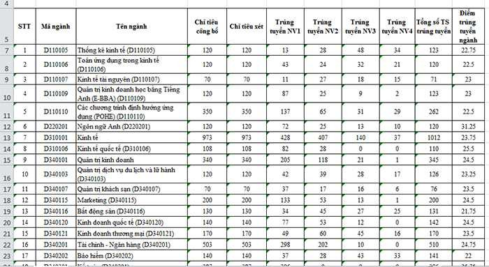 Mức điểm chuẩn dự kiến của Đại học Kinh tế Quốc dân đến ngày 16/8 như sau.