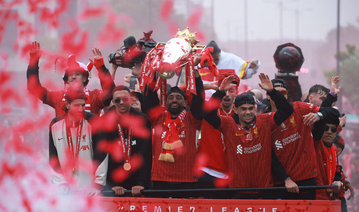 Liverpool ăn mừng chức vô địch Ngoại hạng Anh 2024-2025. (Ảnh: Reuters)