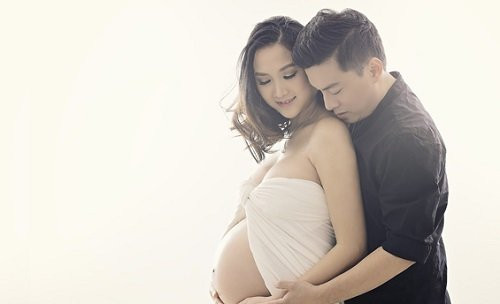 Vợ chồng nam ca sĩ đã chụp ảnh kỉ niệm khi Yến Phương mang thai ở tháng thứ 7