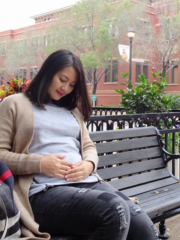 Sau khi có tin vui, vợ chồng nữ diễn viên quyết định sang Mỹ để nghỉ ngơi và sinh em bé