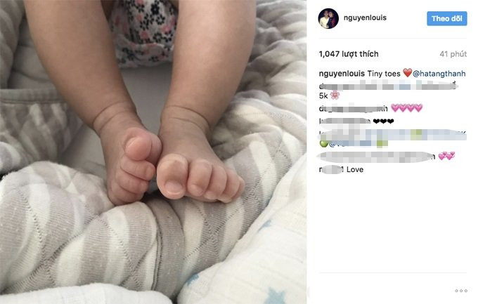Còn ông xã của nữ diễn viên thì thích thú khoe hình đôi bàn chân nhỏ xinh của con gái