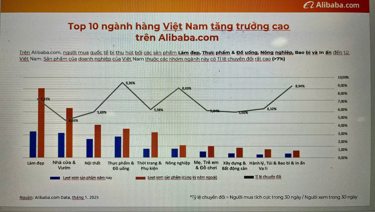 Top 10 ngành hàng Việt tăng trưởng mạnh nhất trên Alibaba.com