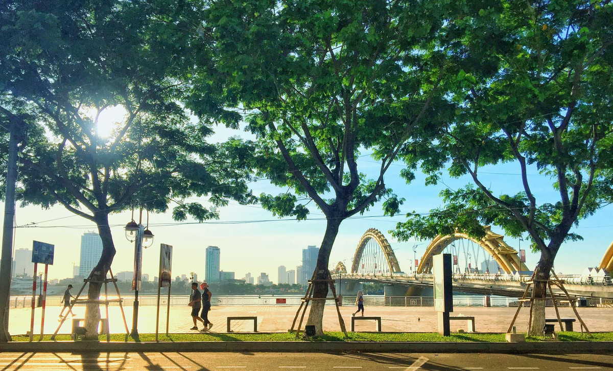 Ngồi ngắm bình minh hay hoàng hôn tại những chiếc ghế đá được bố trí trên vỉa hè, ngắm những cây cầu, đặc biệt là cây cầu Thuận Phước, hay xa xa là tượng Phật Quan Âm dựa vào núi Sơn Trà sẽ đem đến cho bạn cảm giác vô cùng khác biệt.