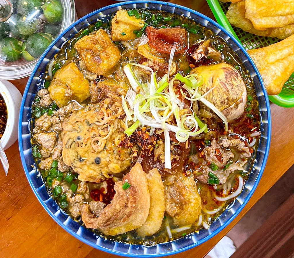Nước dùng của quán đậm đà, thanh ngọt tự nhiên. Các nguyên liệu như thịt bò, tóp mỡ, giò tai, tôm, mực, bún, rau, giá đỗ… được quán lựa chọn kỹ lưỡng, cẩn thận để đảm bảo chất lượng và hương vị.