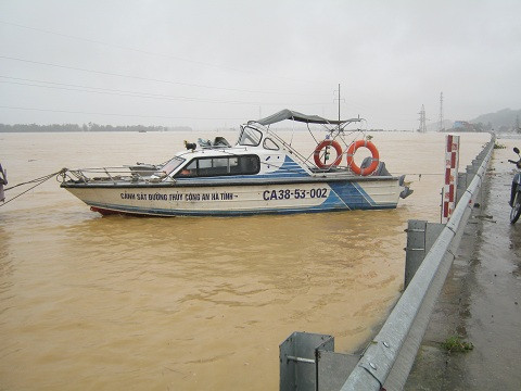| Ca nô của cảnh sát túc trực tại điểm đen phòng sự cố |