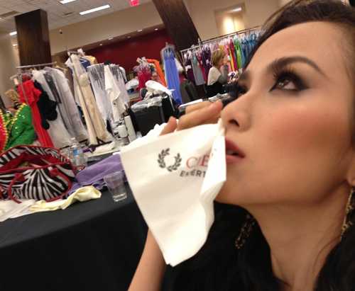 Đặc biệt, Diễm Hương thông báo tin vui là cô được chọn để chụp hình riêng cho Victoria’s Secret và được chuyên gia trang hàng đầu của hãng thời trang này trang điểm.
