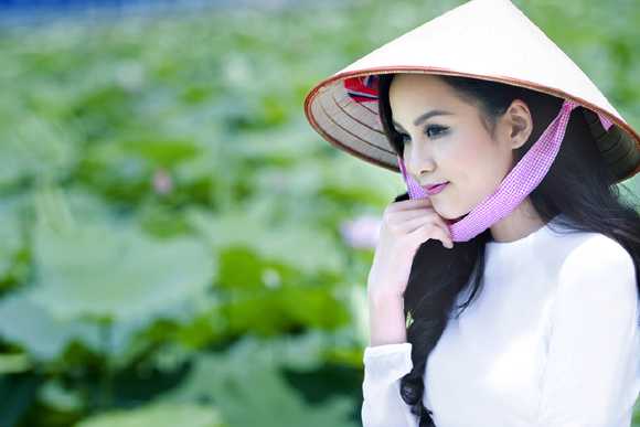Trong tà áo dài truyền thống, giữa đầm sen Tây Hồ, Hoa hậu Diễm Hương khoe vẻ đẹp duyên dáng và rạng rỡ.