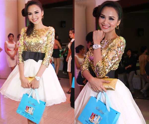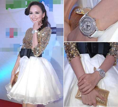 Diễm Hương liên tục phải nhìn giờ trong sự kiện khi đeo chiếc đồng hồ 5 tỷ.