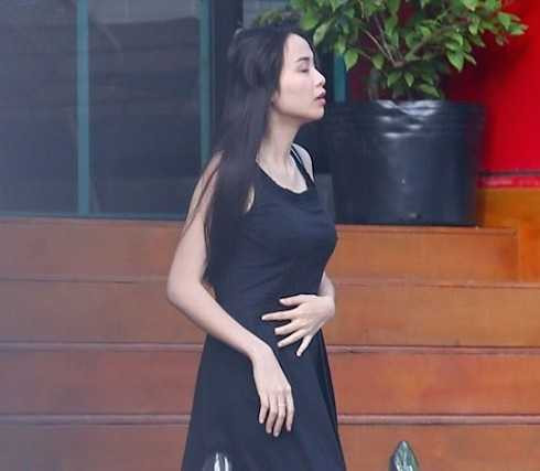 | Diễm Hương dùng tay che bụng sau khi dính nghi án mang thai 4 tháng. |